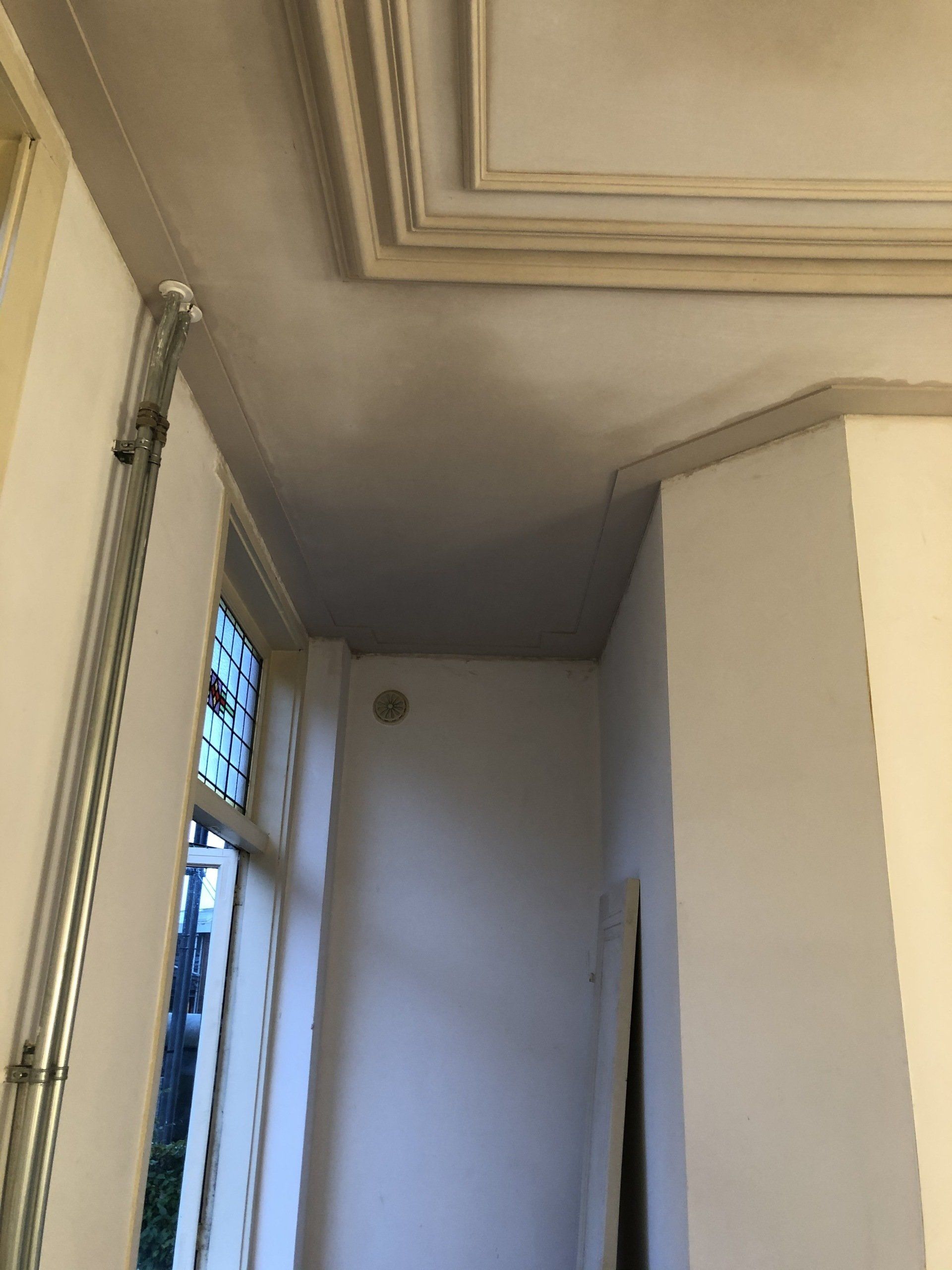 Een monumentaal pand aan de Utrechtse Hugo de Grootstraat was door de jaren heen geheel ontdaan van oa. zn originele ornamentenplafonds.Het enige wat er nog zat wat de plafonds betreft waren wat gipskartonplaten, doorgaans ben ik persoonlijk meer gecharmeerd van een andere pleisterdrager, maar gezien deze draagkrachtig genoeg was en rekening houdend  met het budget ben ik op de gipskartonplaat verder gegaan in zowel de voor-als de achterkamer.