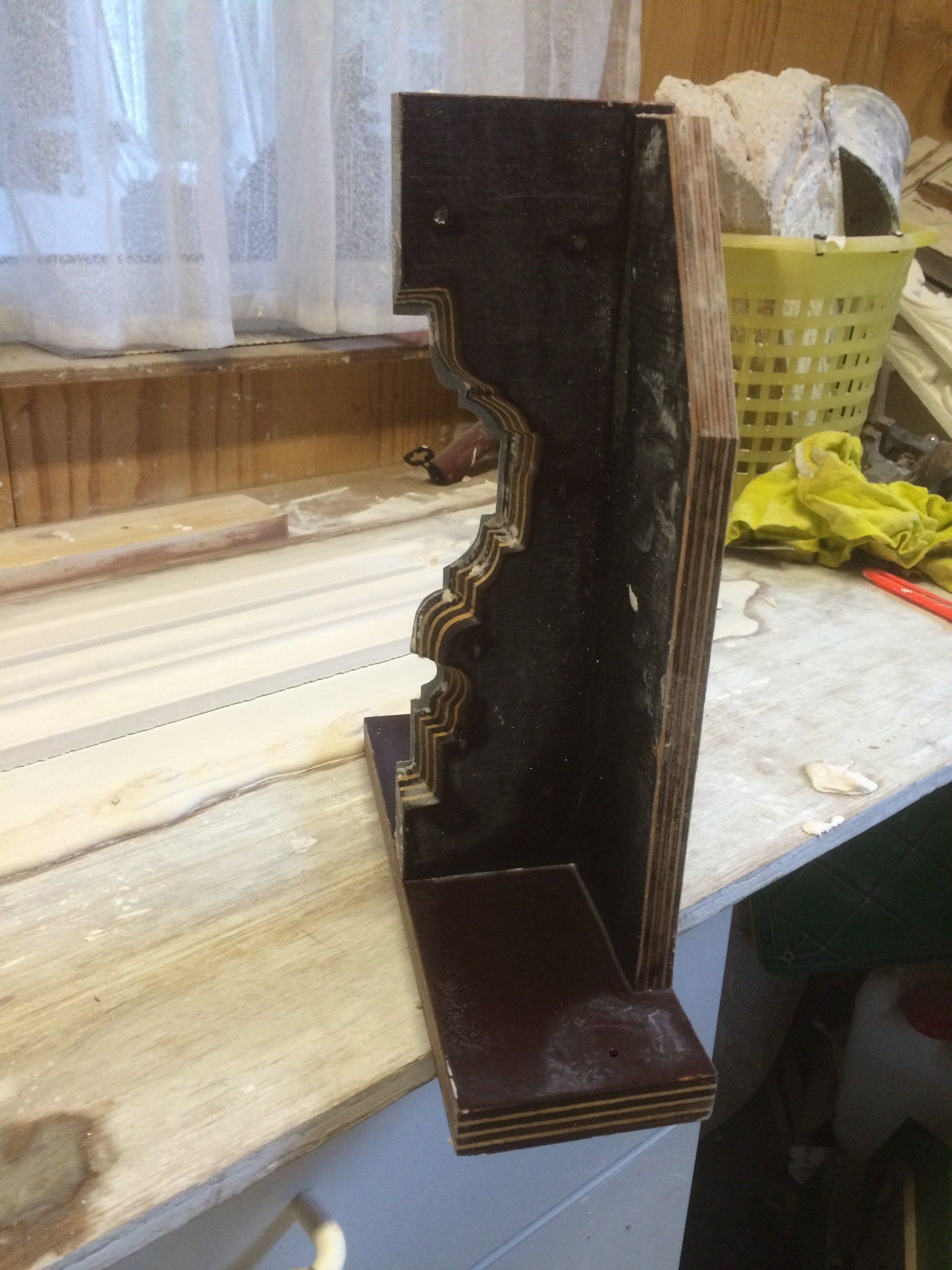 Dit deel leek mij verstandiger om op de traditionele wijze te stukadoren, berapen met kalkmortel en wat cement en pleisteren met een kalk/gips specie, dit gezien de omstandigheden wat de buitenzijde betreft.